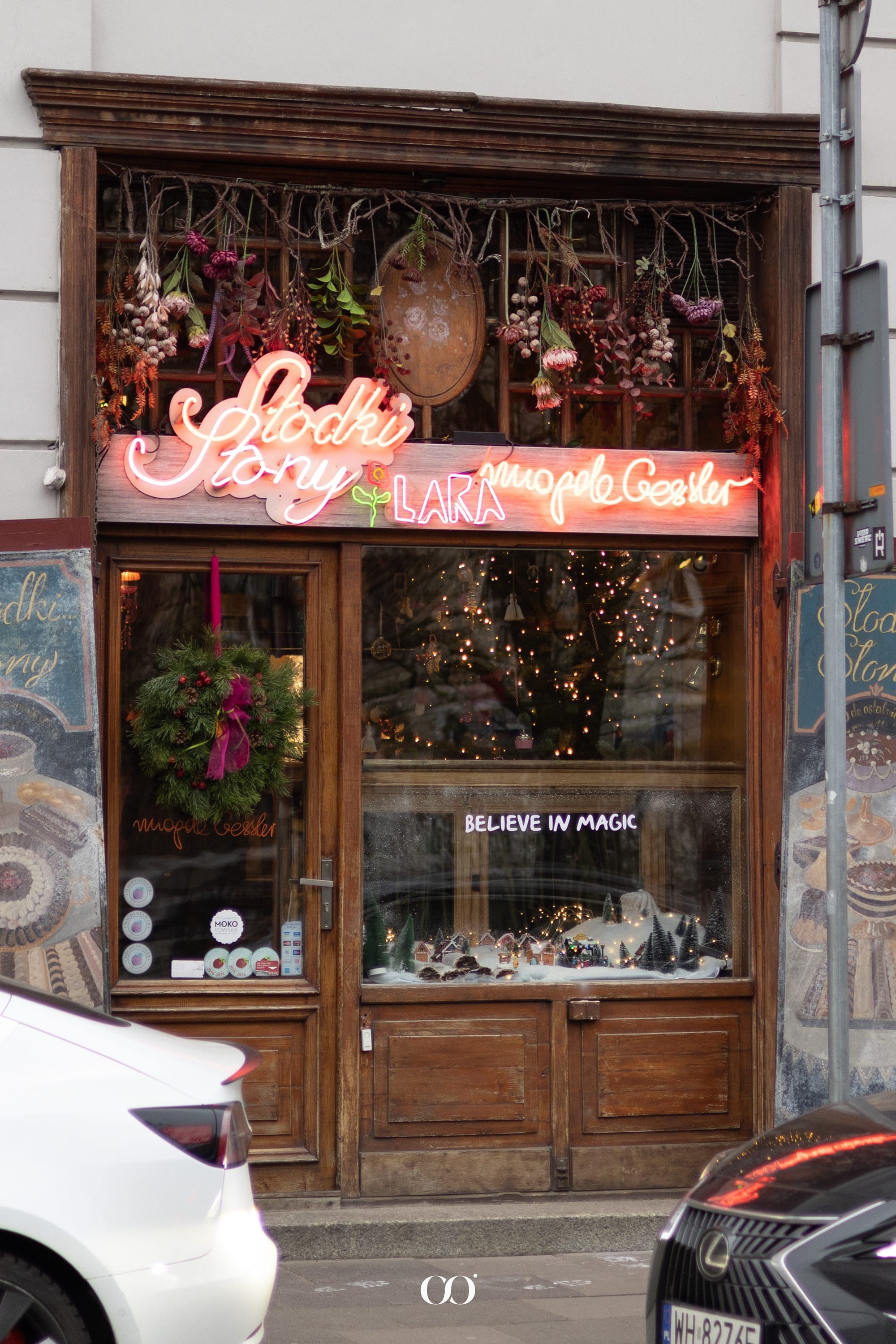 Festive window display at Słodki Słony cafe-patisserie, Warsaw 2025. Photo: Warsawslook